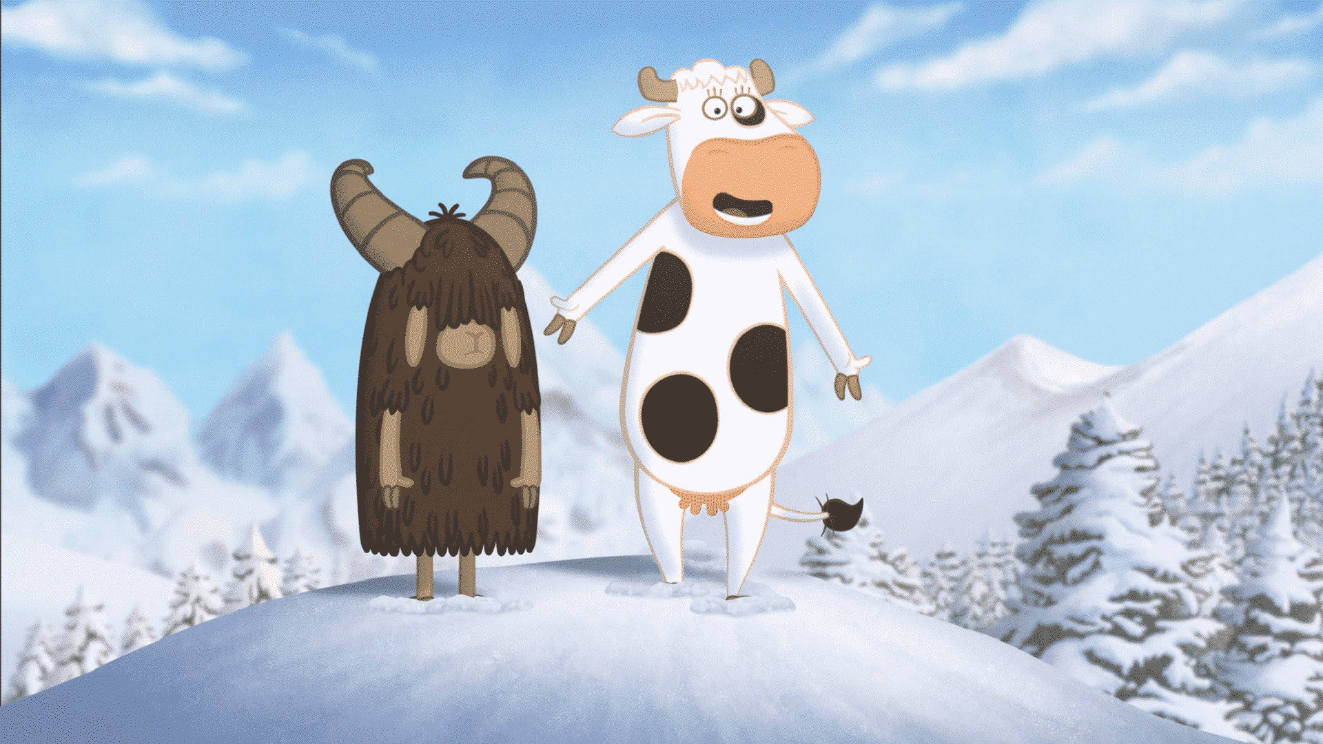After their journey that led them to the sea, our four cows, Clarisse, Marguerite, Aglaé and Rosine, are now on their way to the mountains. JB, the eco-pastoral guide, invited them to join him on a trip to discover the snow-capped peaks.