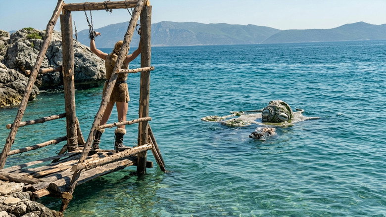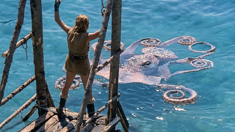 Features a mustached villain, who is the leader of a Viking clan that worships an octopus god-monster. The Vikings wish to kidnap a beautiful girl to sacrifice her to their demigod, but the heroic Tarkan, aided by his dog, Kurt, is there to save the day.